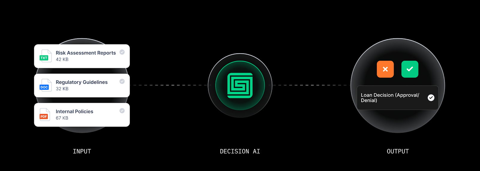 Document AI classifies and extracts data from bank statements, tax returns, and credit reports. Decision AI performs initial credit scoring and triggers follow-ups for missing documents or inconsistencies automatically.