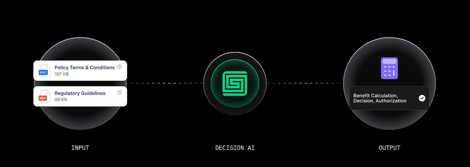 Decision AI applies payout logic, benefit caps, and authorization rules automatically. Edge cases get flagged for human review based on confidence thresholds.