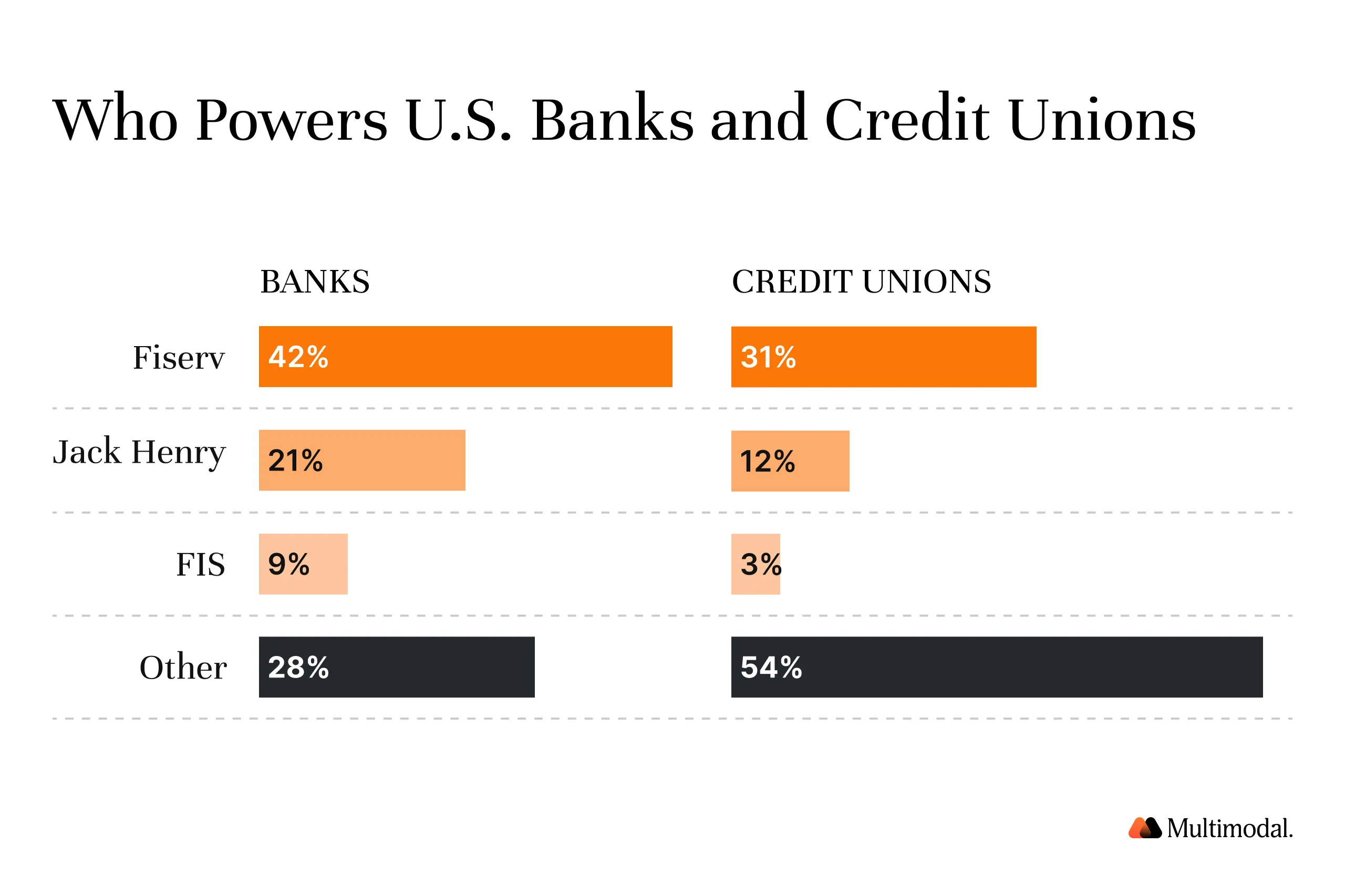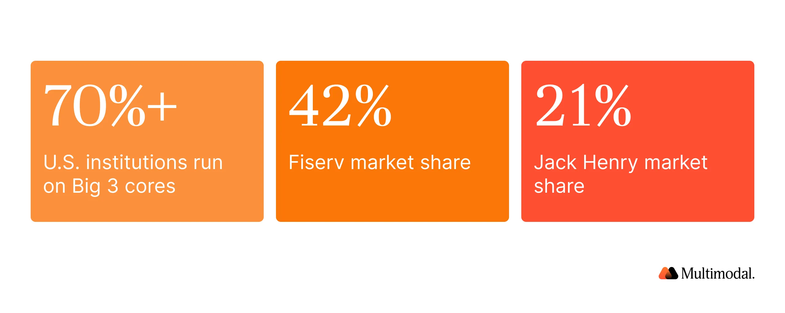 The Big Three core banking systems power 70%+ of U.S. financial institutions.