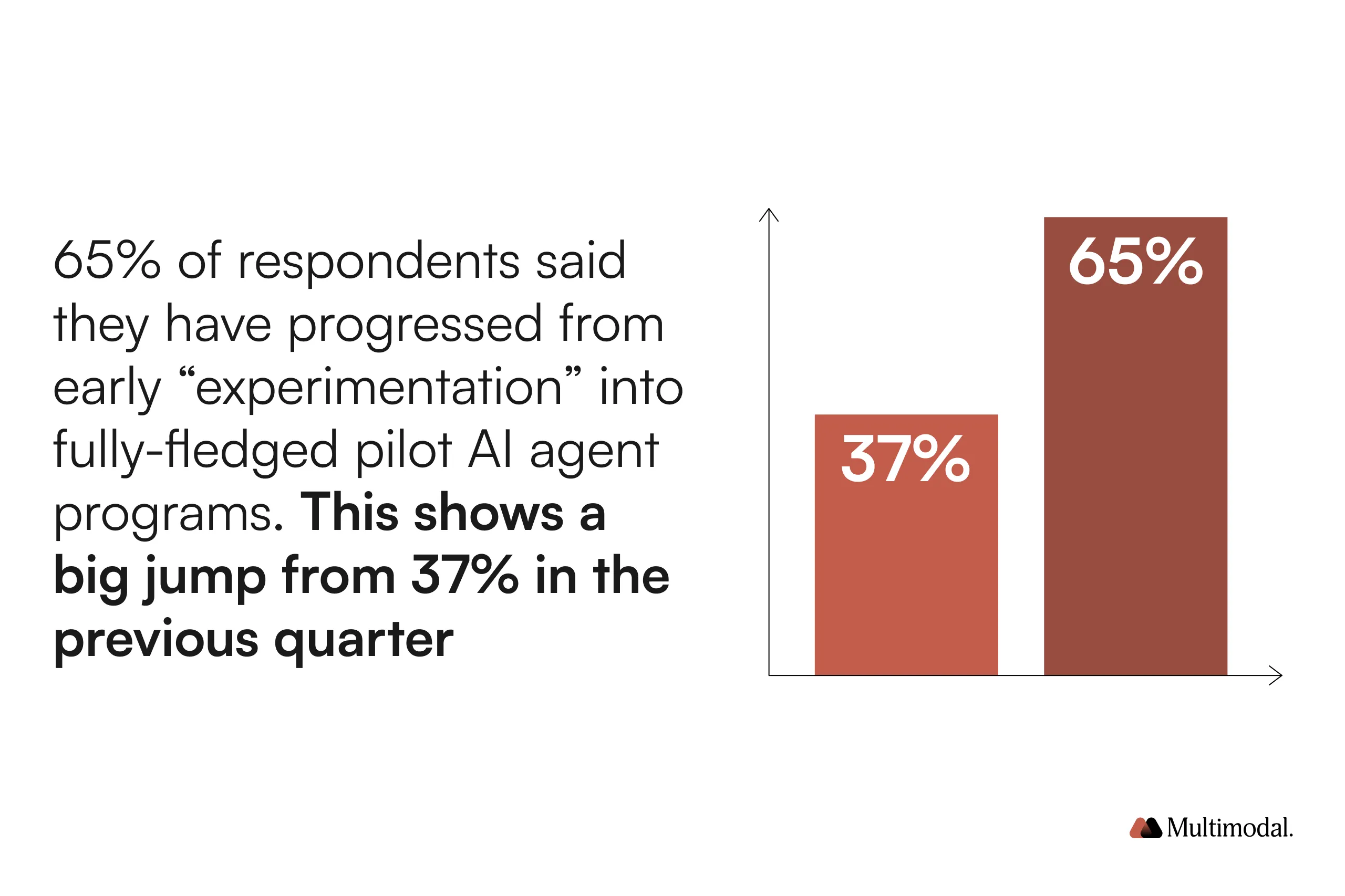 The key insight of the survey was that 65% of respondents said they have progressed from early “experimentation” into fully-fledged pilot AI agent programs. This shows a big jump from 37% in the previous quarter.