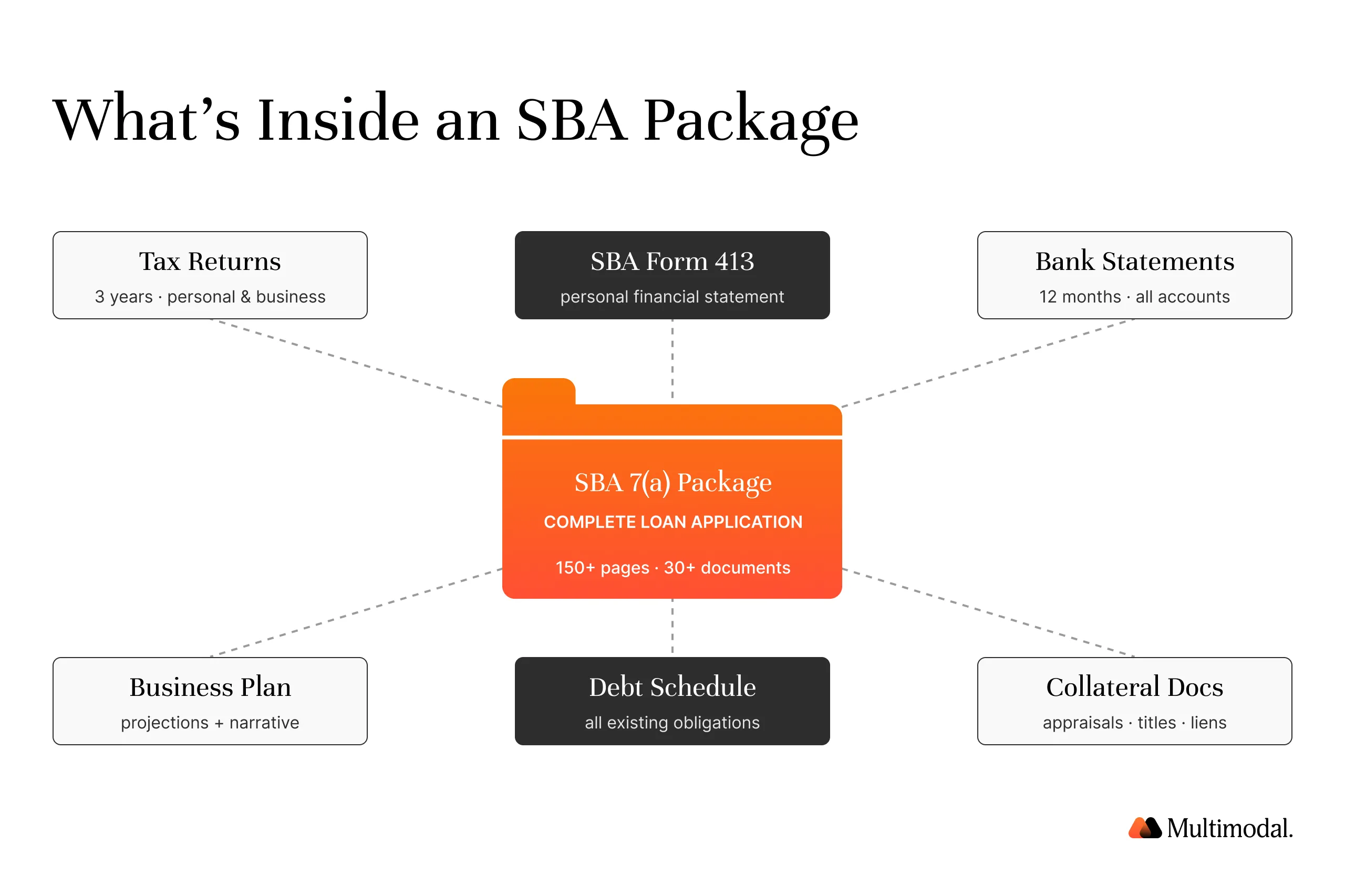 SBA 7(a) packages average 150+ pages, making them ideal for AI-driven automated loan processing.