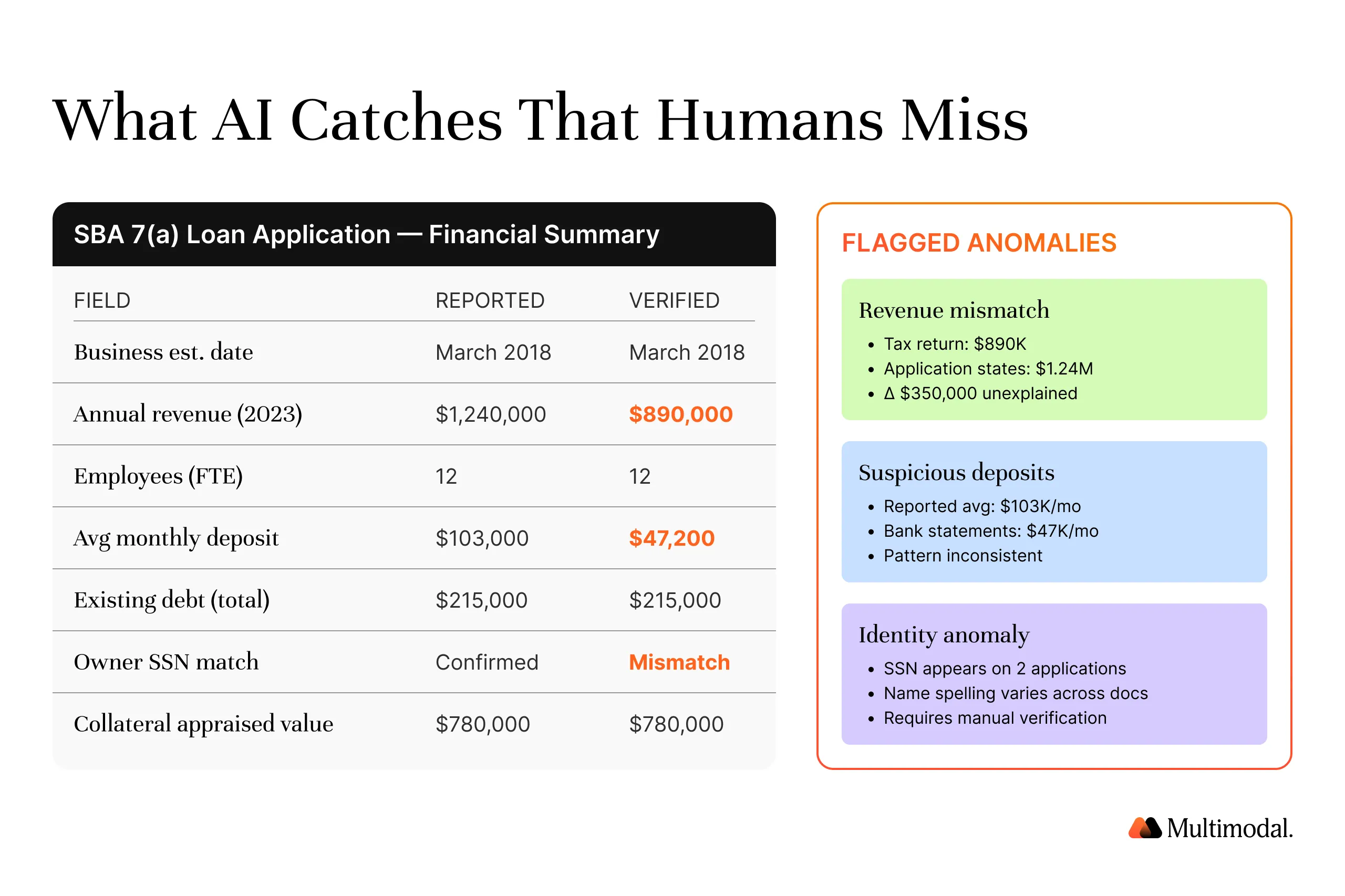 The loan application process for a 7(a) package is fundamentally different from a conventional business loan. Each document must be cross-referenced against others for consistency: does the borrower's reported revenue on the tax return match the income statements? Is the credit history aligned with the personal financial statement? Manual data entry across these document types introduces human errors at every handoff in the loan origination process.