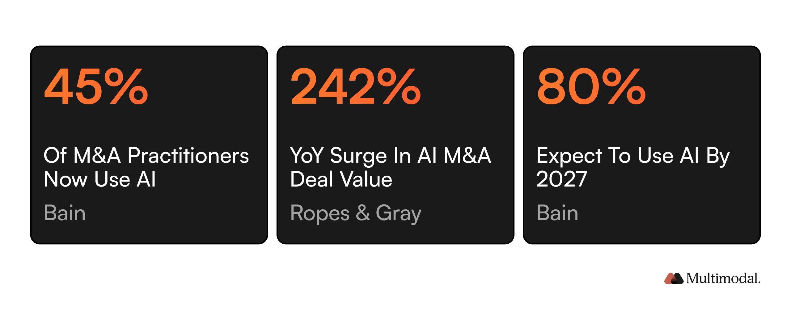 The private equity and M&A landscape is experiencing a seismic shift in AI adoption. According to Bain & Company, 45% of M&A practitioners now use AI tools, doubling from the previous year. AI M&A deal value surged 242% year-over-year by Q3 2025, showing that artificial intelligence has moved into day-to-day execution and is reshaping how deal teams operate.