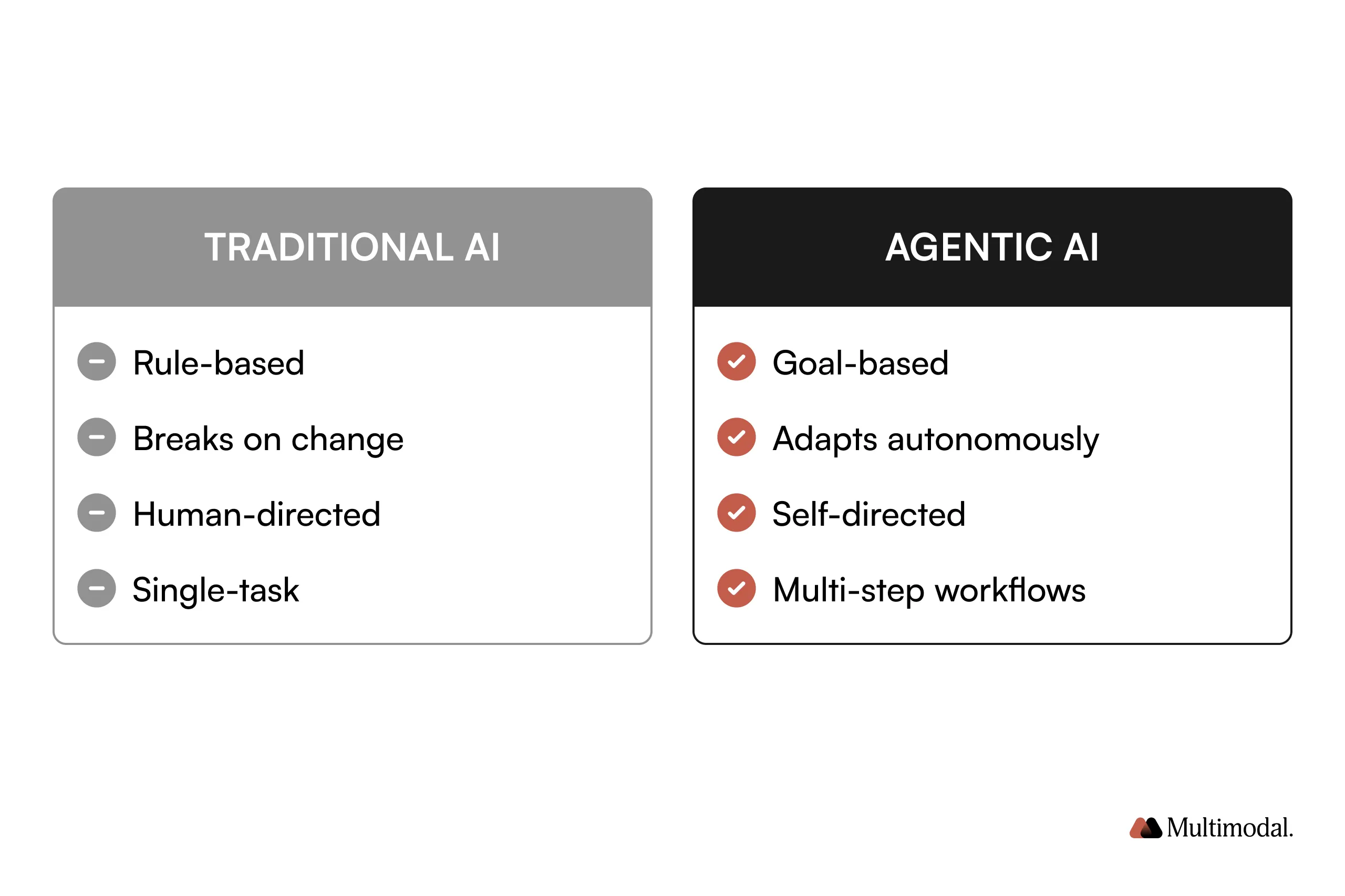 Traditional AI follows rigid rules: "Execute this specific task when triggered." It breaks when conditions change and requires constant human direction. Think: automated email responses or simple data extraction scripts.