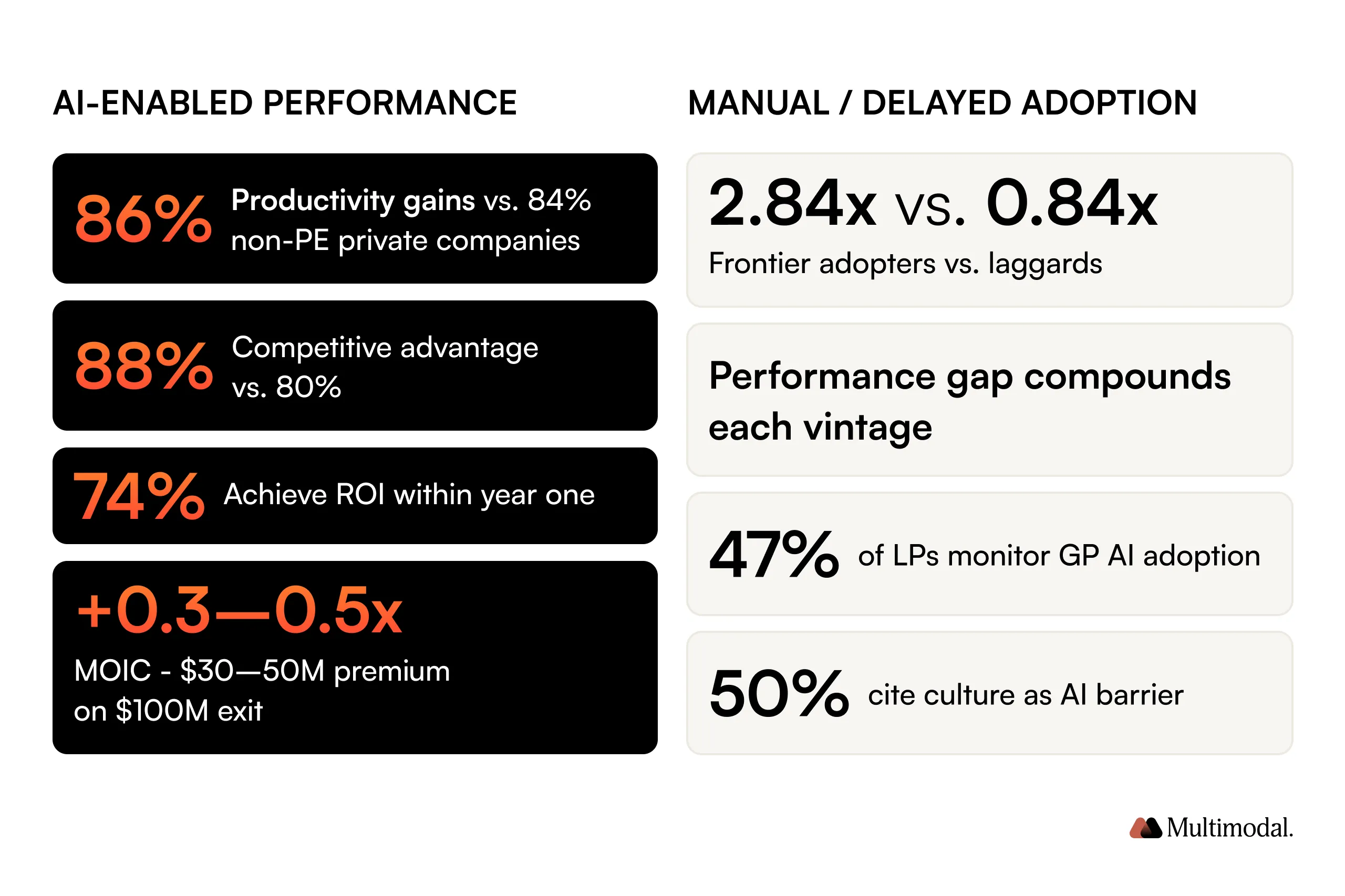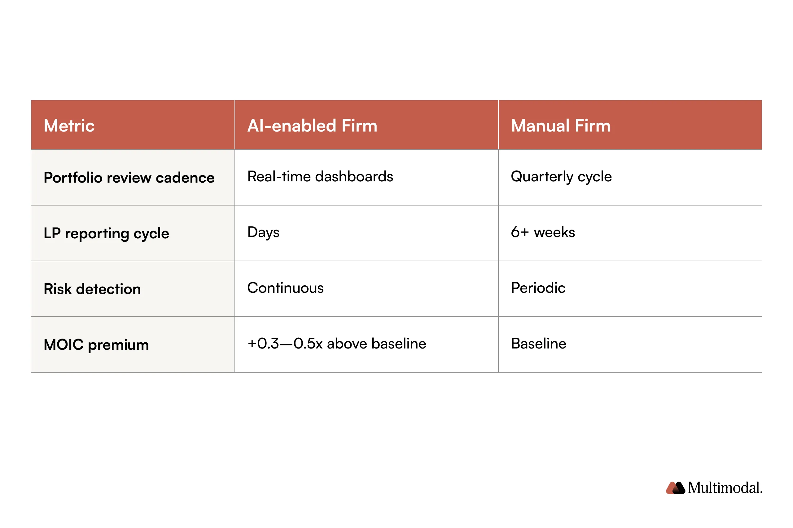 LP confidence: Firms without an AI capability story are losing fundraising conversations. In a tighter capital environment, ops maturity is part of diligence.