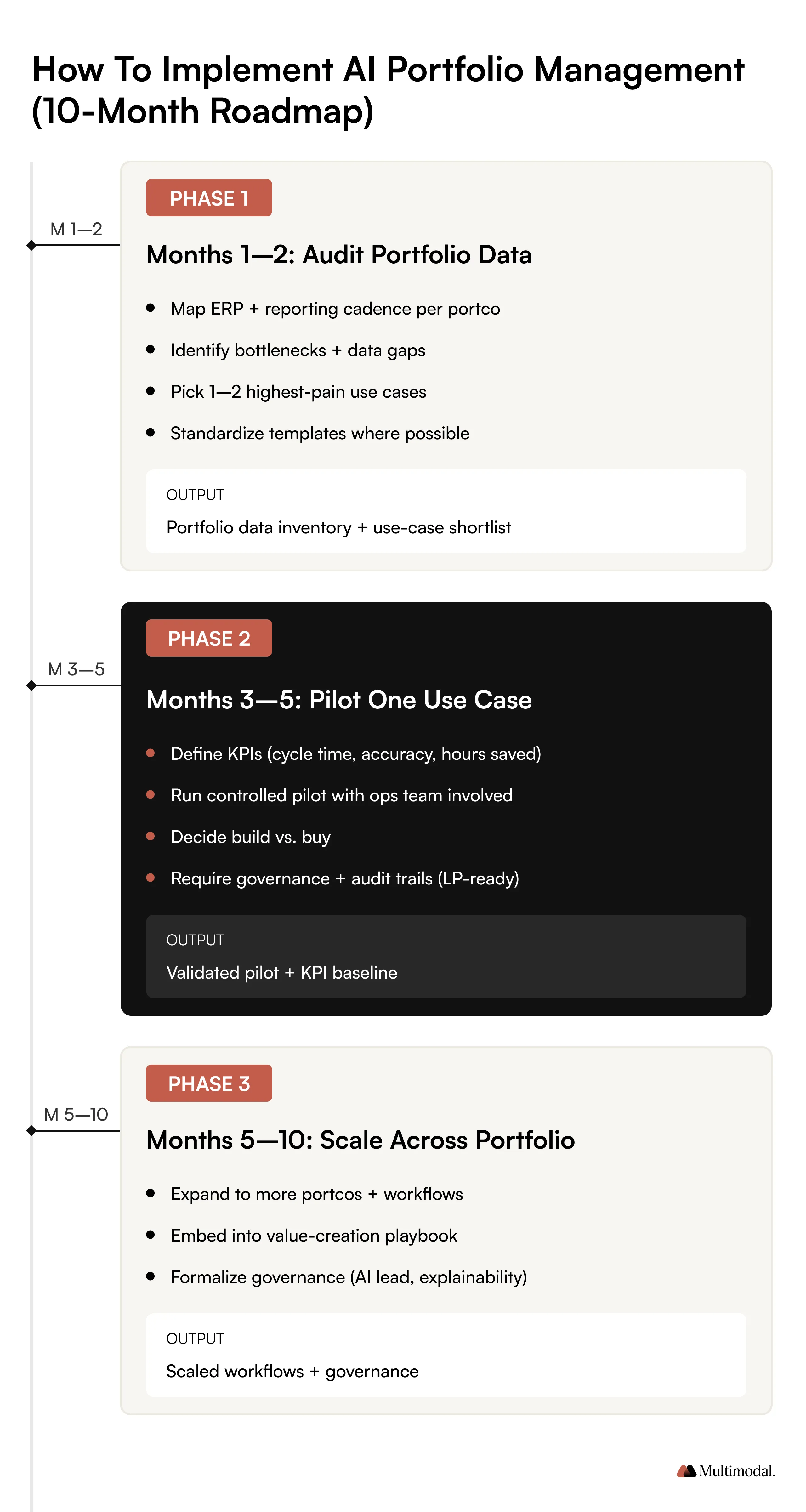 The firms that operationalize AI portfolio management fastest don't start with the most ambitious use case; they start with a disciplined pilot: one workflow, clean inputs, clear ownership, and a measurable outcome they can take back to partners. That proof point is what earns the mandate to scale.
