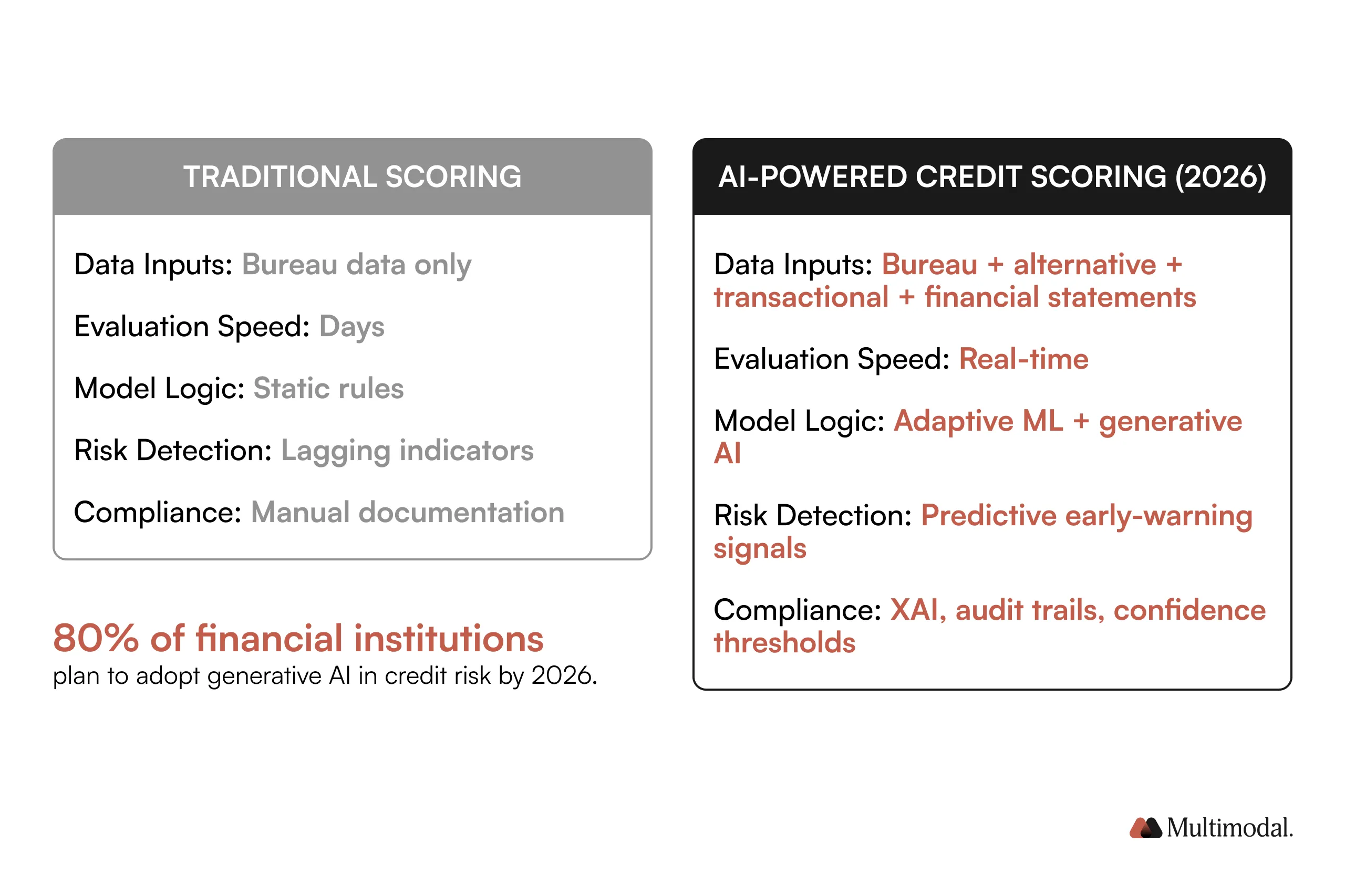 Additionally, unlike traditional credit scoring systems that focus narrowly on predictive accuracy, Multimodal emphasizes informed credit decisions through transparency, confidence scoring, and auditability.