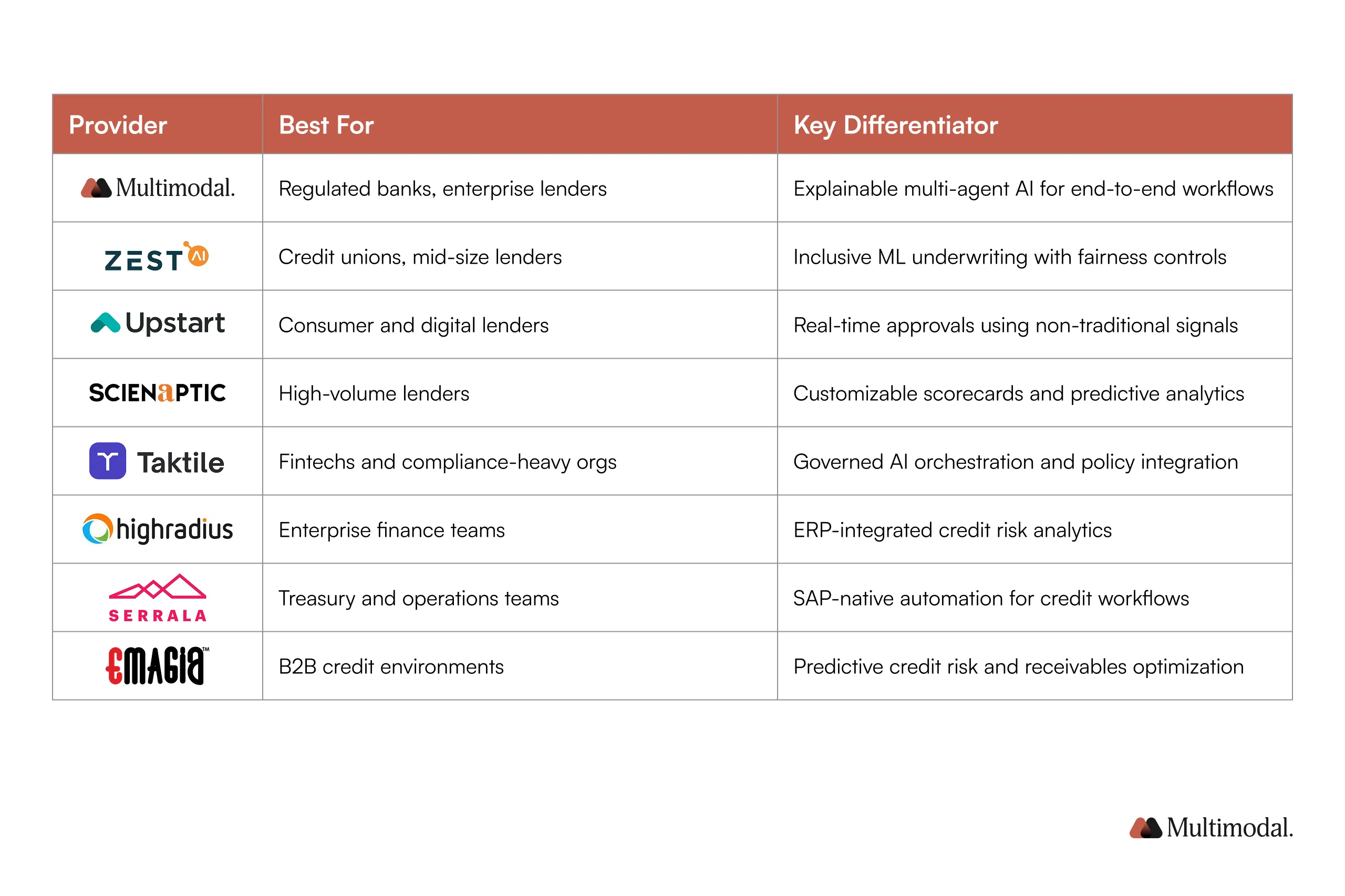 AI Providers for Credit Scoring & Decisioning – Quick Comparison