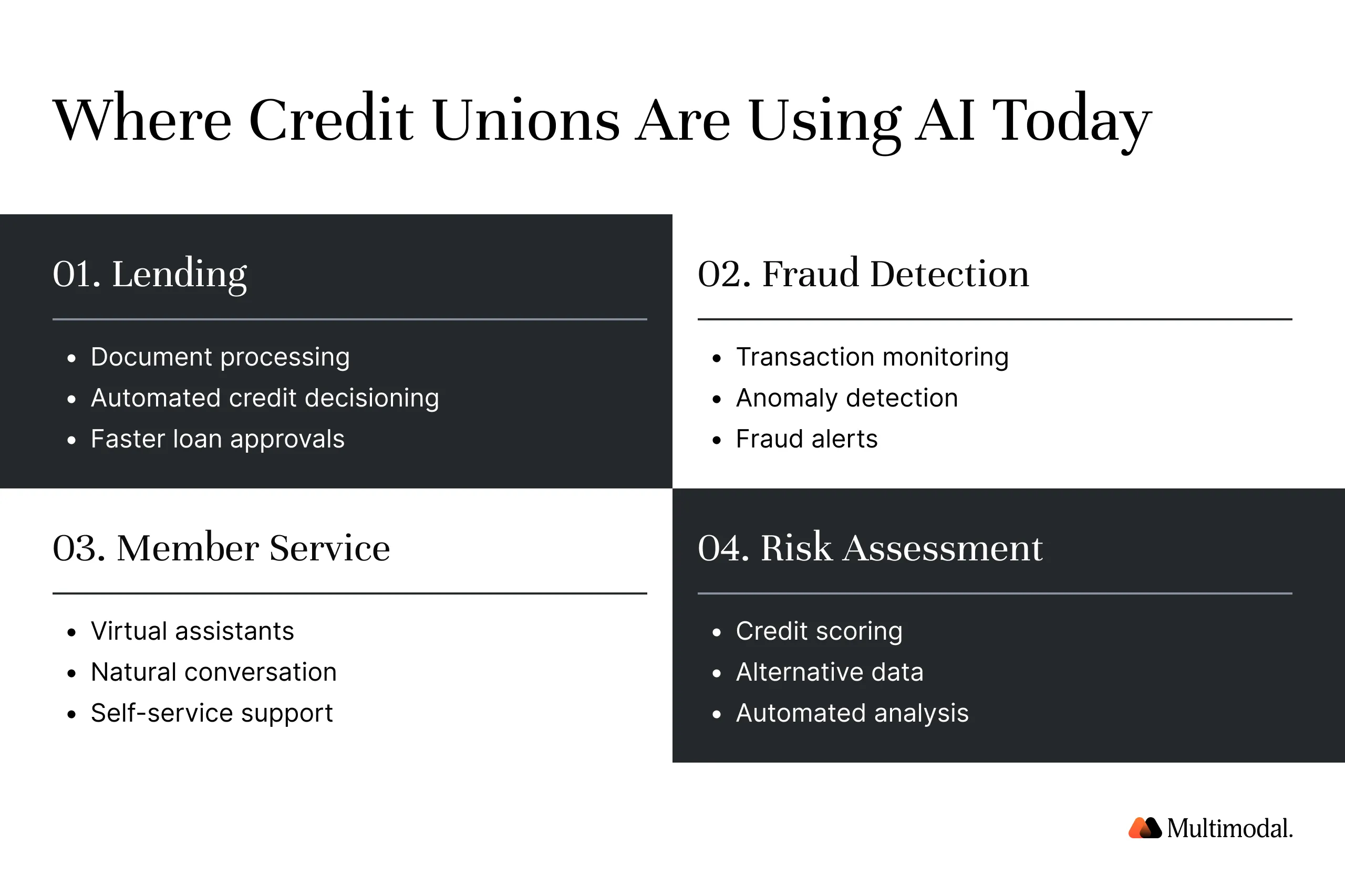 In practice, AI adoption in credit unions rarely depends on a single AI tool; instead, multiple AI systems work together across lending, fraud detection, and member service.