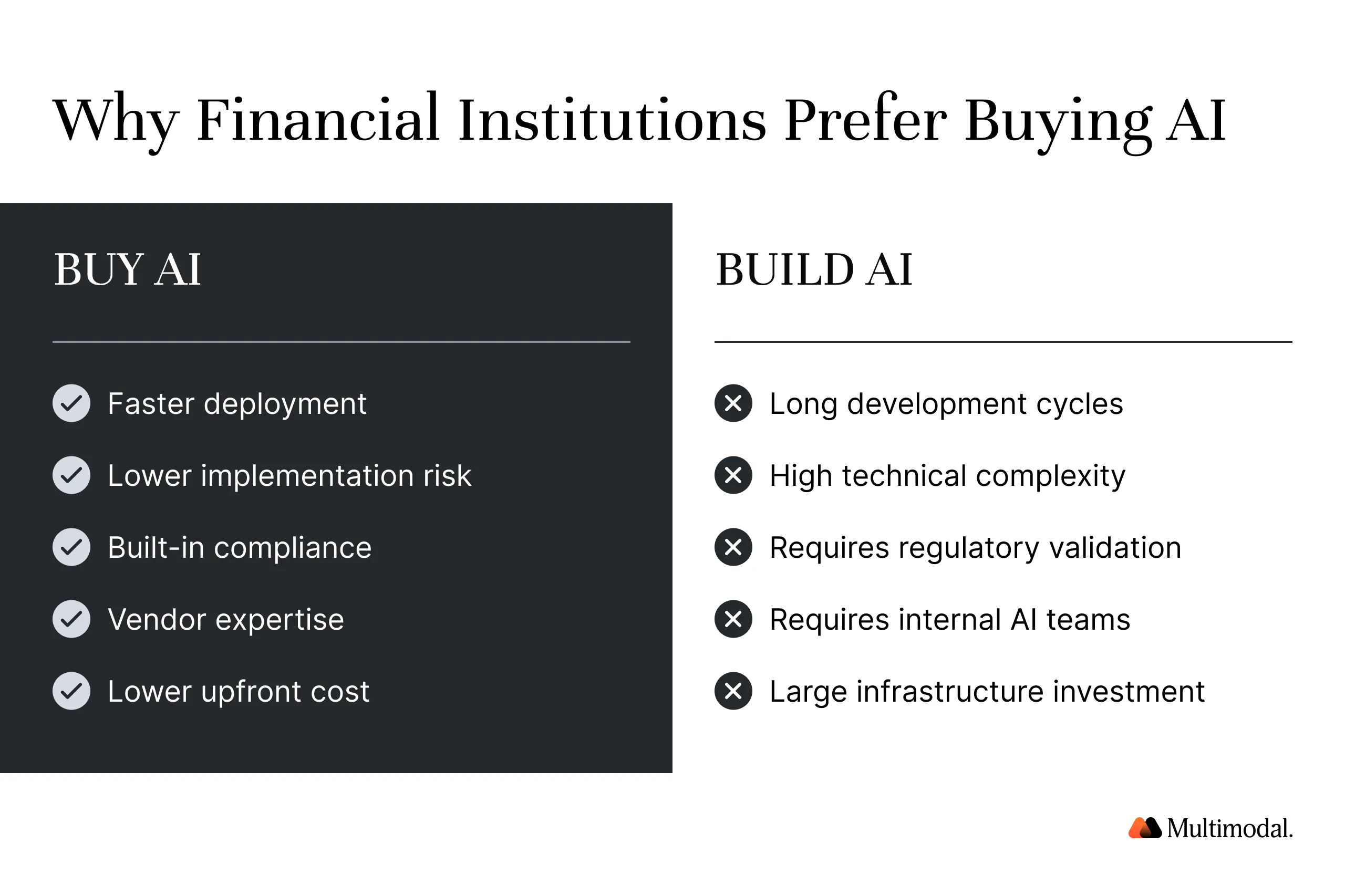 This gap between enthusiasm for artificial intelligence and practical AI implementation is where the buy-versus-build decision becomes critical for financial institutions. Institutions that recognize AI's value but lack a deployment path are the ones most likely to turn to external vendors.