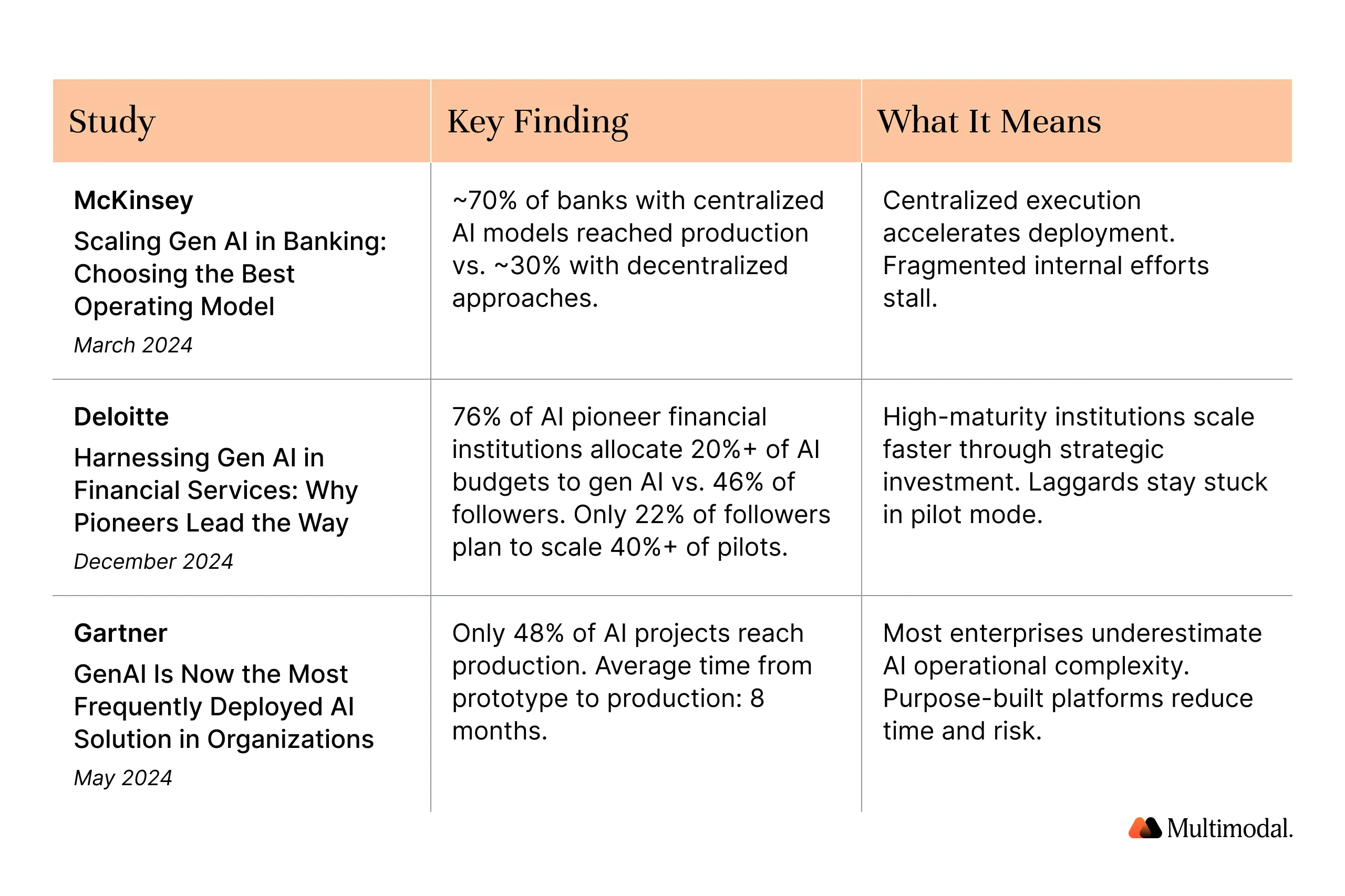 Across these studies, a consistent pattern emerges: financial institutions are prioritizing AI implementation through vendor platforms while avoiding the operational burden of building full AI infrastructure internally.