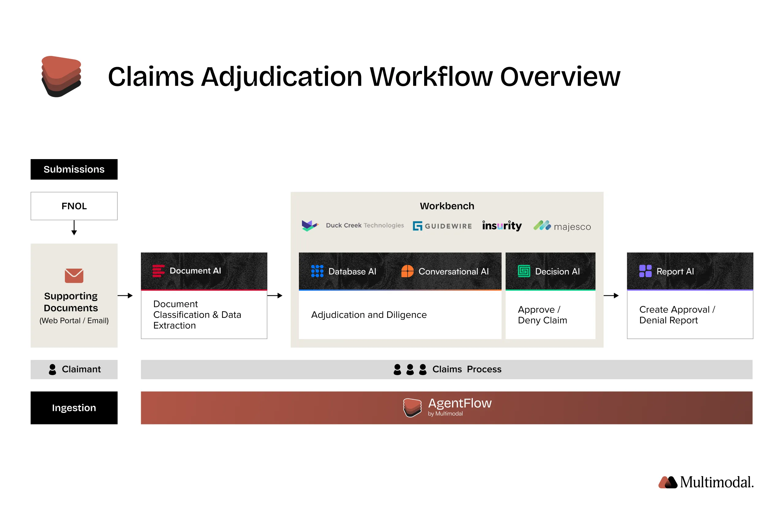 Multimodal has developed AgentFlow, an all-in-one agentic AI platform designed specifically for the insurance industry. It orchestrates dozens of purpose-built AI agents to automate complex processes, reduce friction between existing systems, and ensure traceability in every AI decision. AgentFlow helps insurance companies scale process automation while improving accuracy, compliance posture, and customer relationships.