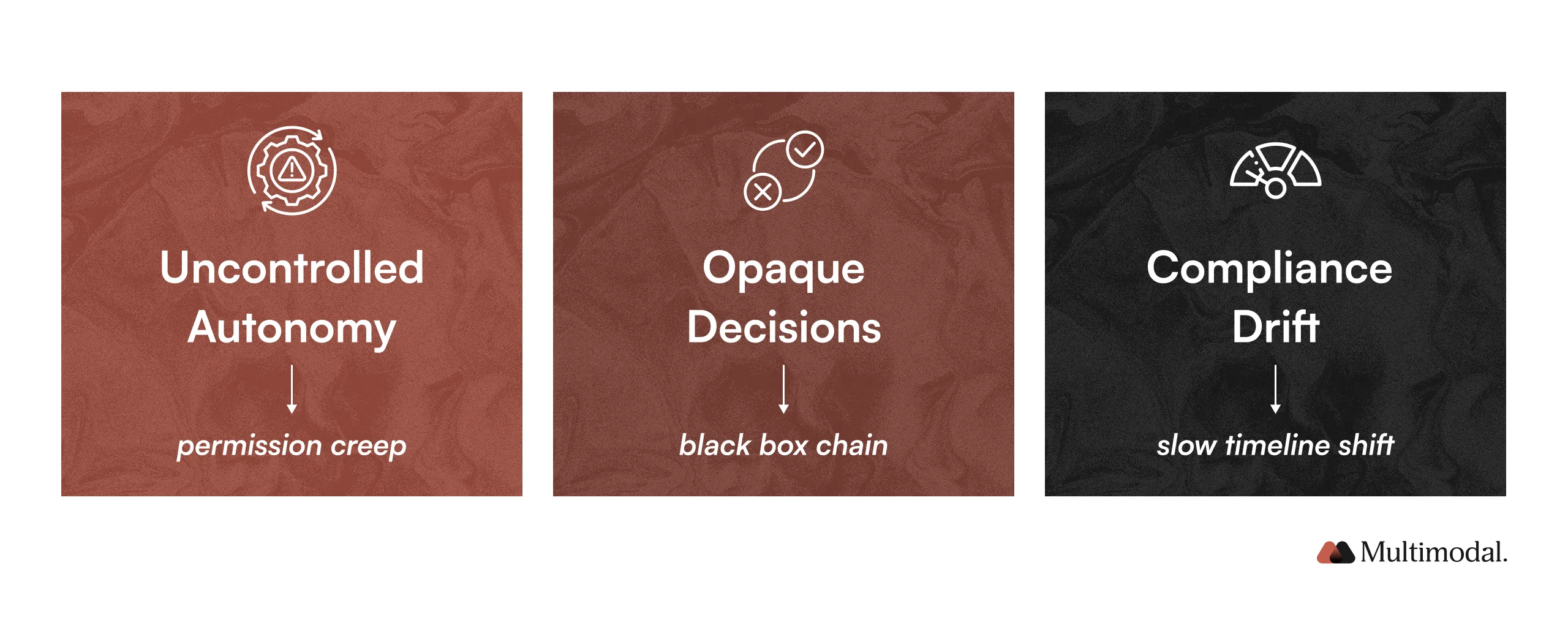 In finance and insurance, these properties directly conflict with regulatory expectations for accountability, explainability, and operational control. Risk is no longer hypothetical. It shows up as: