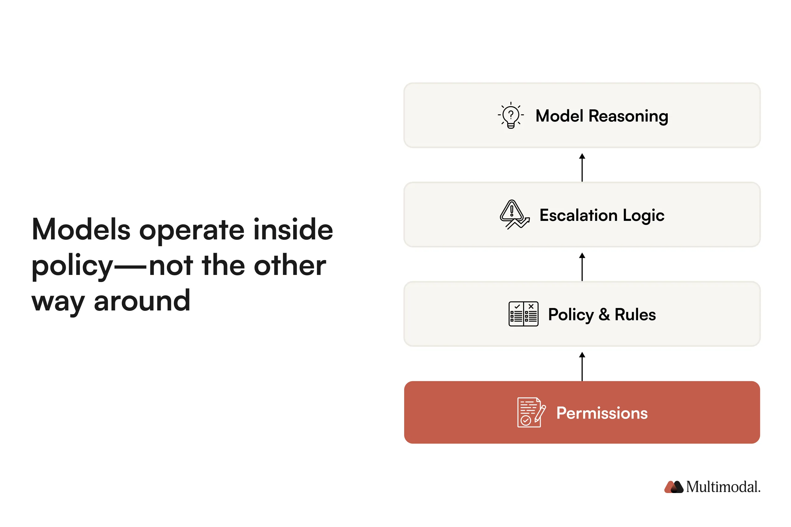 Second, policy defines behavior before models do. Business rules, compliance constraints, and escalation logic shape the agent’s decision space. The model operates inside those boundaries rather than discovering them dynamically.