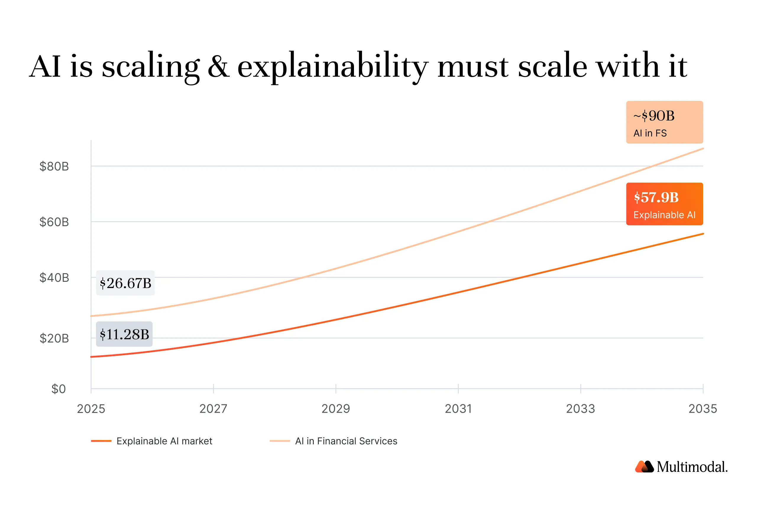 The global market for explainable artificial intelligence stands at $11.28B in 2025, projected to reach $57.9B by 2035. Artificial intelligence in financial services is a $26.67B market growing at 24.5% CAGR. 85% of financial institutions apply AI models in fraud detection, risk management, and operations.