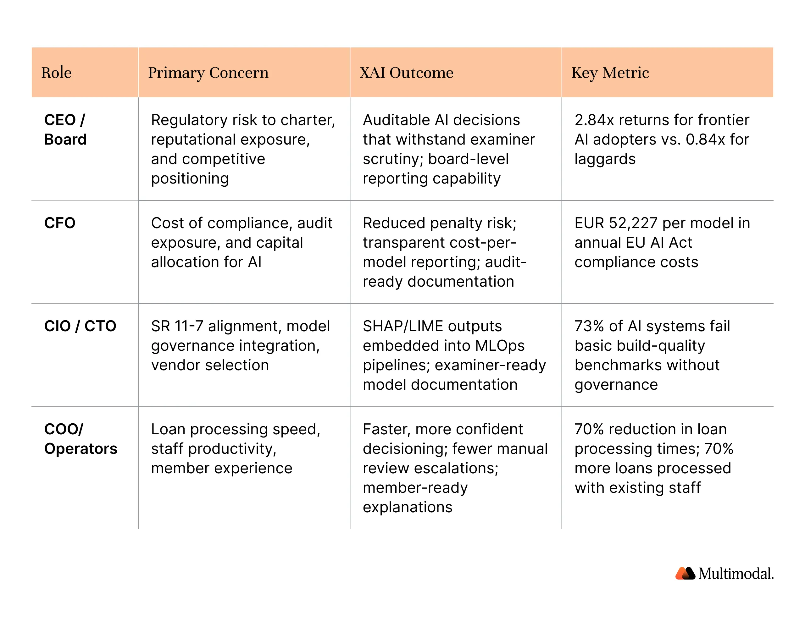 If your institution is ready to move from AI experimentation to AI that examiners can audit and boards can defend, the conversation starts at Multimodal. Book a call with us today.