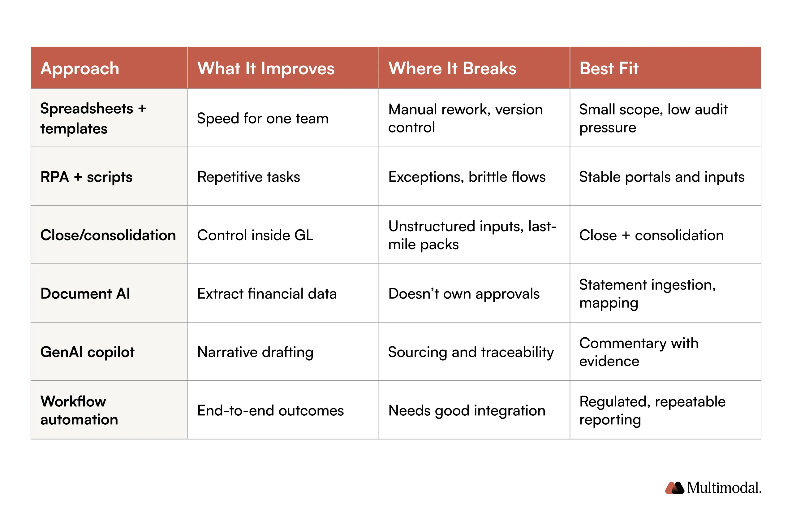 RPA helps automate repetitive tasks, but it struggles to scale for automating financial reporting processes when you need approvals and traceable transformations.