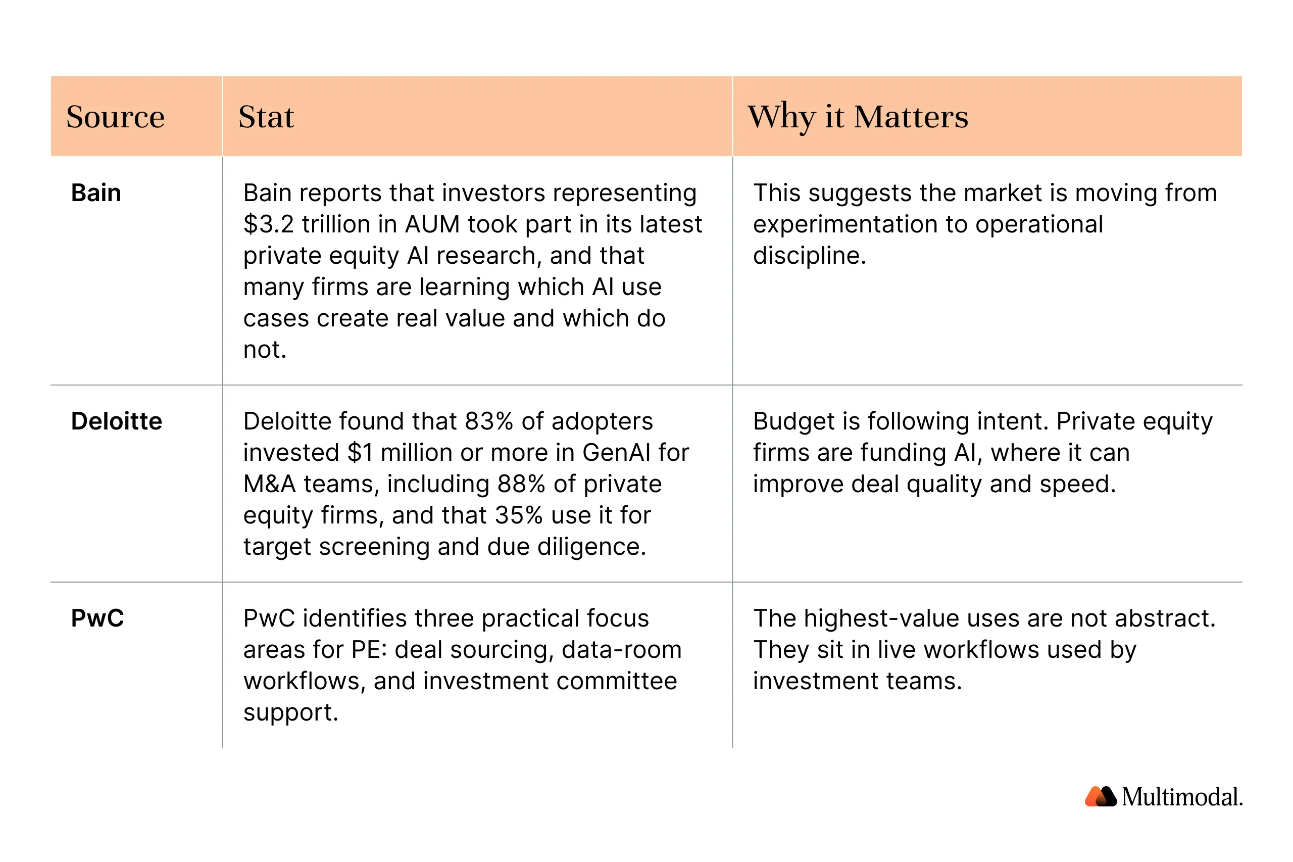 This finding appears in Multimodal’s State of Agentic AI in Private Equity (2026).
