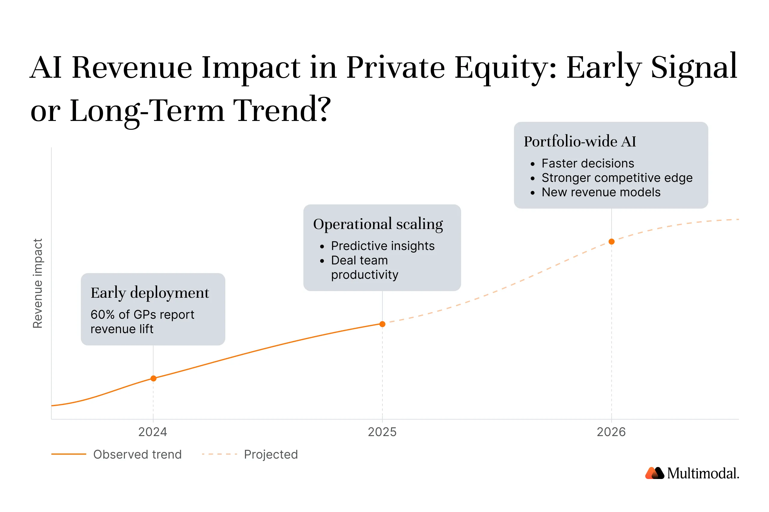 The 60% revenue lift finding is one data point from Multimodal's State of Agentic AI in Private Equity report, which covers AI adoption patterns across fund operations and portfolio companies, the operational use cases generating the clearest ROI, and what separates firms seeing measurable portfolio performance gains from those still in experimentation mode. Download the full report now.
